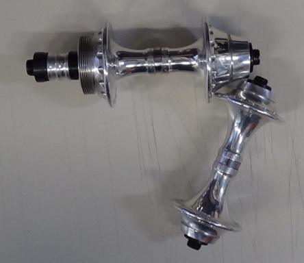 Front hub is 100mm OLD and 32 holes. Rear is 126mm OLD, 32 holes and Italian thread. The box is obviously a bit worn, the hubs are perfect.