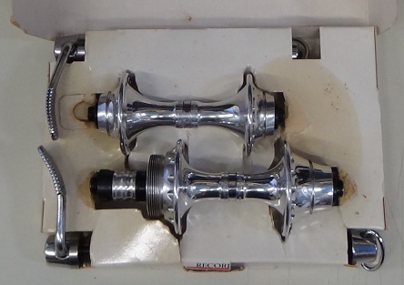 I bought these CAMPAGNOLO Record C hubs in early 1988, expecting to build a set of wheels for my new Eddy Merckx Professional. I never built the wheels, and I no longer see the need to keep these hubs.